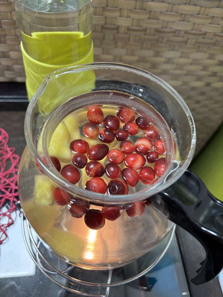 Vitamin-Glow-Shot: frischer Ingwer, frische Ananas und frische Cranberrys; boostet dein Immunsystem und bringt Glow in deine Haut